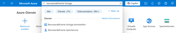 - Suchen Sie nach "Benutzerdefinierte Voralge" (Genaue Bezeichnung: "Benutzerdefinierte Vorlage bereitstellen"). Klicken Sie auf das entsprechende Suchergebnis.