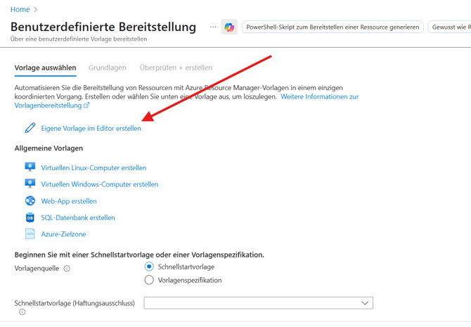 1. Klicken Sie auf "Eigene Vorlage im Editor erstellen"