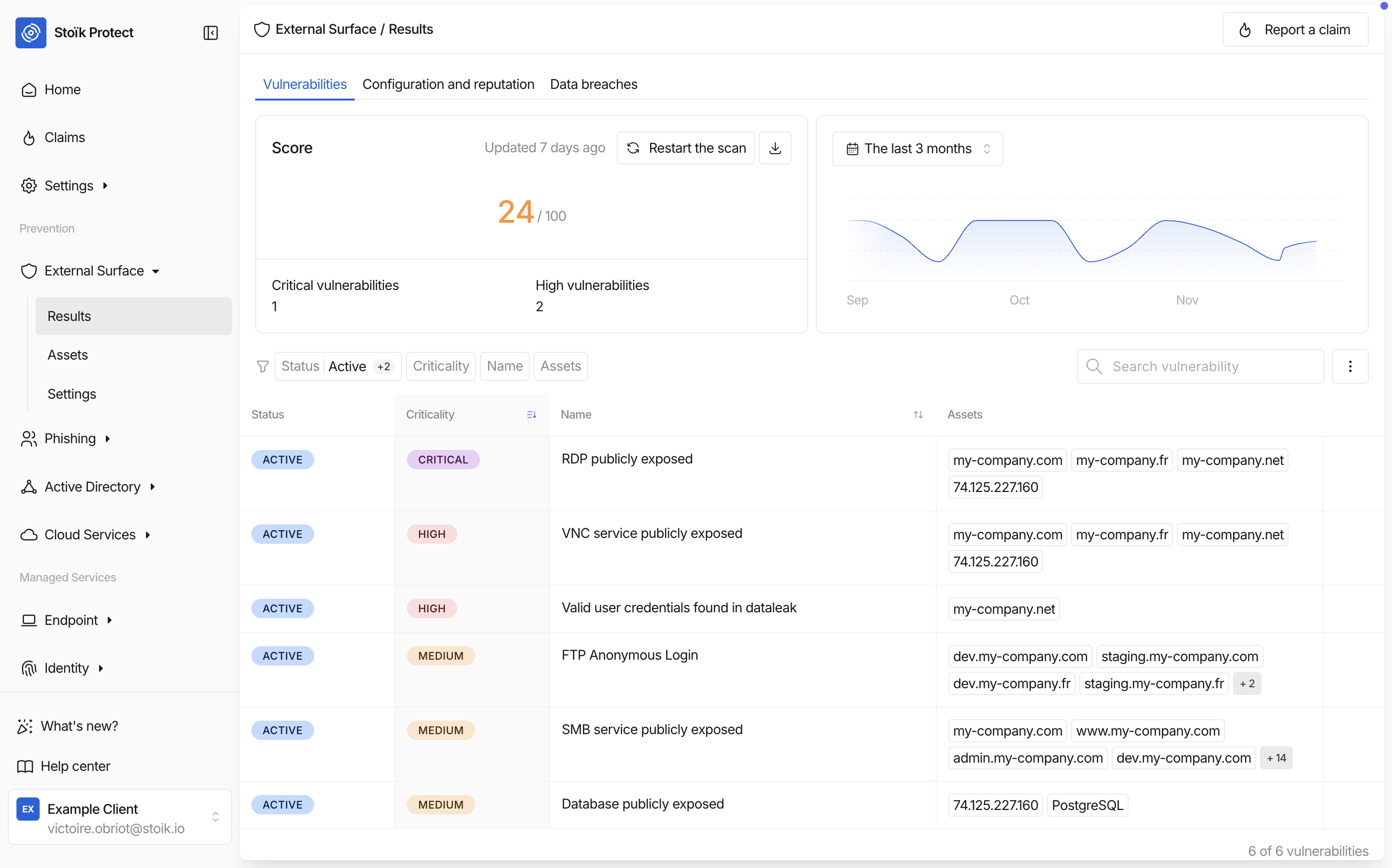 The table component across Stoïk Protect has been fully redesigned to provide a smoother, faster, and more intuitive experience when navigating large datasets.