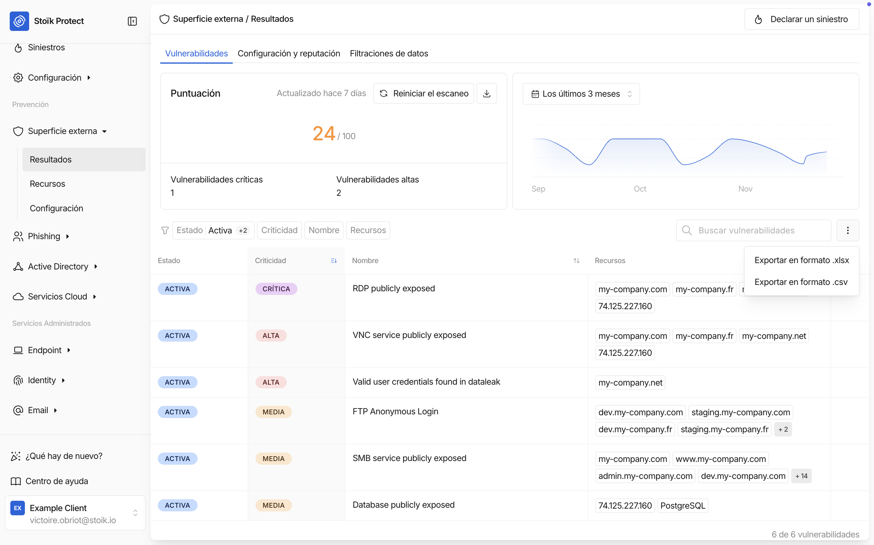 El componente de tabla en Stoïk Protect ha sido completamente rediseñado para ofrecer una navegación más fluida, rápida e intuitiva. Esta actualización mejora notablemente la legibilidad y la interacción con los datos.