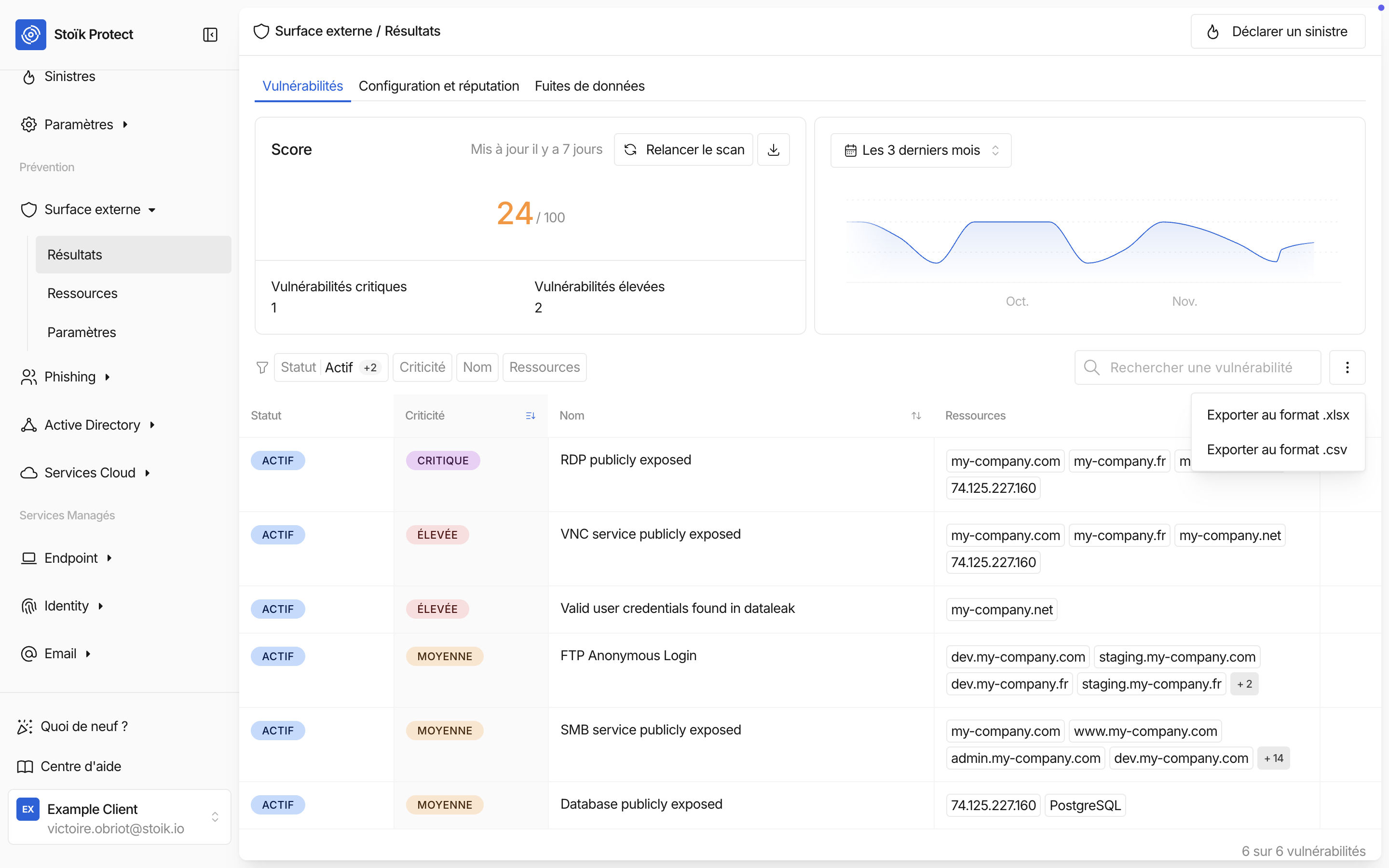 Le composant de tableau dans Stoïk Protect a été entièrement repensé pour offrir une expérience de navigation plus fluide, plus rapide et plus intuitive. Cette mise à jour améliore considérablement la lisibilité et l’interaction, permettant aux utilisateurs d’explorer les données de manière plus efficace.